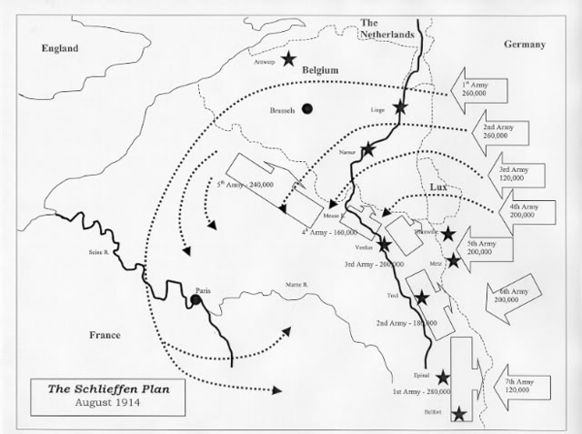 Op 31 augustus 1914 neemt generaal Alexander von Kluck het besluit om zijn eerste leger naar het zuidwesten van Parijs te laten afzwenken. Daarmee wil hij von Bülow te hulp snellen die in de slag van Guise een onverwacht tegenoffensief van de Fransen moest verduren. Een gevolg van deze beslissing is dat hiermee het von Schlieffenplan volledig wordt verlaten. Het eerste leger van von Kluck had volgens de plannen ten zuidoosten van Parijs moeten blijven. In plaats daarvan zit het eerste Duitse leger van von Kluck nu ten zuidwesten. En wat nog erger is, zijn flanken zijn daarmee blootgesteld aan de aanvallen van het Franse zesde leger dat zich aan het verzamelen is in de buurt van Parijs.