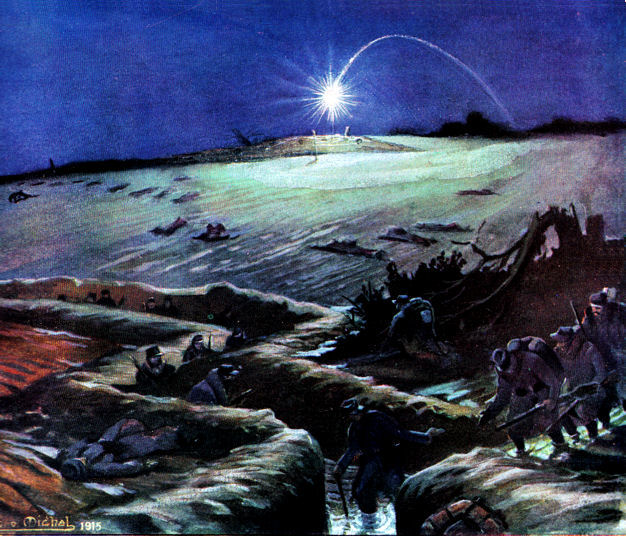 Om negen uur ’s avonds volgden we met circa veertig soldaten onderluitenant Malvesy die ons in groepjes verspreid opstelde. Het was een donkere nacht, landkaarten en kompas hadden geen enkel nut. We moesten ons door ons gevoel laten leiden. Maar deze keer kwamen we bedrogen uit want degenen die met de onderluitenant voorop liepen, kwamen in een Duitse loopgraaf terecht. We merkten het pas toen de vijandelijke wachtposten, misschien nog banger dan wij, met een keelstem riepen :”Halt, wer da ! Halt, wer da !”. We raakten in totale paniek. Het was redden wie zich redden kan, we wisten zelfs niet meer waar de Franse loopgraven waren. Er werd geschoten en met handgranaten gegooid. We verstopten ons in granaattrechters. (…)