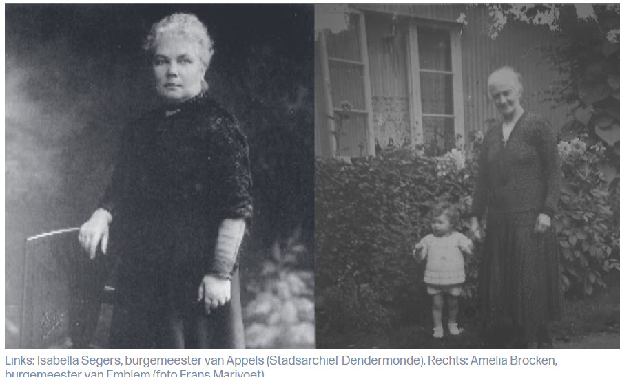 Als oud-inwoner van Ranst vermeld ik graag Amelia Brocken, die bijna uit het niets burgemeester wordt van de Antwerpse gemeente Emblem (nu een deel van Ranst). Ze is de vrouw van een sluismeester op de Kleine Nete maar heeft middelbaar onderwijs genoten – eerder uitzonderlijk voor die tijd – en is erg sociaal geëngageerd. Bij de verkiezingen in Emblem komt Amelia Brocken op met een lijst met haarzelf als enige kandidate.