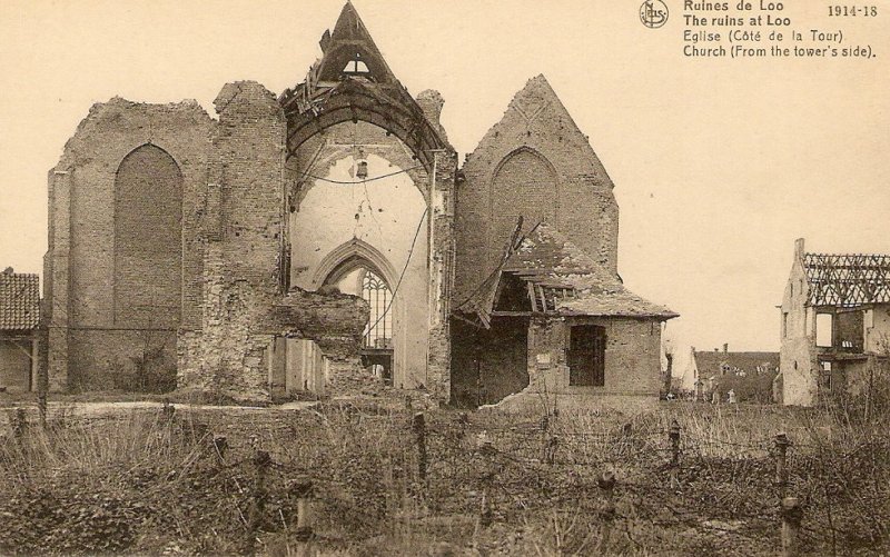 Omdat het Belgische leger de toren van de Sint-Pieterskerk in Lo als uitkijkpost gebruikt, zien de Duitse schutters het gebouw als een belangrijk doelwit. De vijandelijke beschieting treft evenwel ook talrijke huizen en andere burgerlijke gebouwen. Om een verdere vernietiging van Lo te voorkomen, krijgt de Belgische genie de opdracht de kerktoren op te blazen.