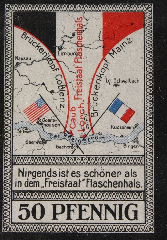 Op 25 maart 1923 marcheren Franse troepen binnen in wat bekend staat als de vrijstaat Flessenhals. Deze vrijstaat is een Duits gebied dat bestaat sinds 10 januari 1919. Het is een gevolg van slechte afspraken tussen Amerikanen en Fransen die op de rechteroever van de Rijn bruggenhoofden bezetten. Het is de bedoeling dat die bruggenhoofden op mekaar aansluiten, maar door een fout in de berekeningen is er een gebied ronde plaatsjes Lorch en Kaub dat niet bij het Amerikaanse noch bij het Franse bruggenhoofd hoort. We hebben dus een corridor die door de slechte wegen in het achterland in feite van de Duitse economie is afgesneden. De inwoners van de vrijstaat moeten het dus hebben van de smokkel om de plaatselijke economie te doen draaien. Wijn uit de bezette gebieden ten westen van de Rijn wordt via Flessenhals naar onbezet gebied gesmokkeld en daar verkocht.